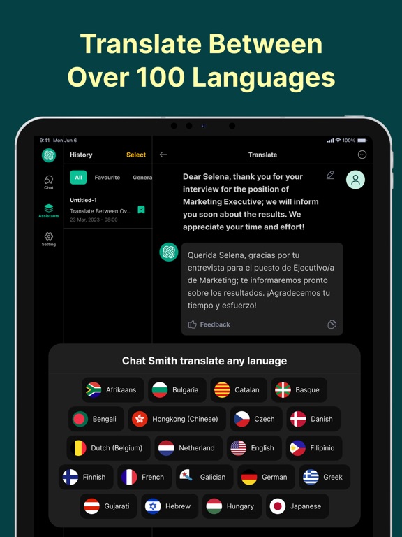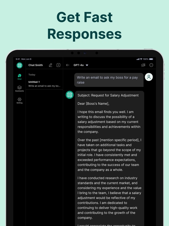 Chat Smith: AI Chatbot & Agent is also valuable in educational settings, where it can explain concepts, answer questions, and support learning across various subjects. Students can use the app to clarify difficult topics or generate study material. Chat Smith: AI Chatbot & Agent transforms learning into an interactive experience on iPhone and iPad.