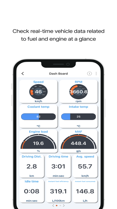 In real-world use, Infocar integrates seamlessly with an ELM327 Bluetooth or Wi-Fi adapter, allowing quick pairing with your vehicle’s onboard computer. Once connected, the app displays live data updates, letting users view metrics such as RPM, speed, engine load, coolant temperature, and fuel system status. On iPhone, the app’s responsiveness and low latency make dashboard interaction feel instantaneous, which is important for accurate, real-time diagnostics.