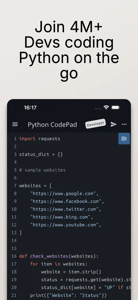 Python Coding Editor & IDE App fits naturally into daily routines, allowing users to code whenever inspiration strikes. The app supports short practice sessions and longer focused work. Python Coding Editor & IDE App enhances everyday coding flexibility on iPhone and iPad.
