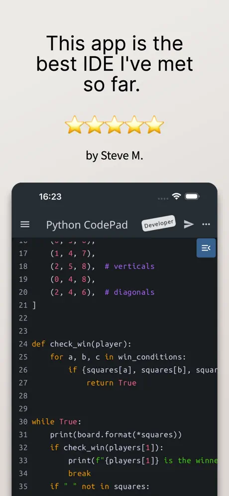 Students can use Python Coding Editor & IDE App for assignments and practice, while developers can rely on it for quick edits and testing ideas. The app adapts well to different coding needs. Python Coding Editor & IDE App fits naturally into both educational and professional routines.