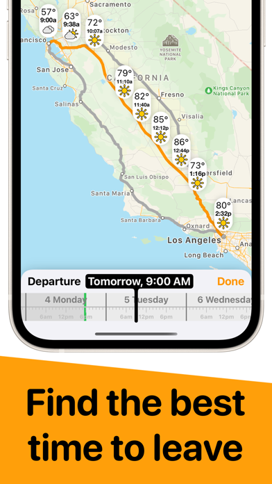Another key feature is its timeline view, allowing you to slide through the route and preview how conditions evolve hour by hour. If you plan to leave later in the day, you can easily compare different departure times to pick the safest moment to drive. This is particularly helpful for long journeys where storms or fog may form halfway through.