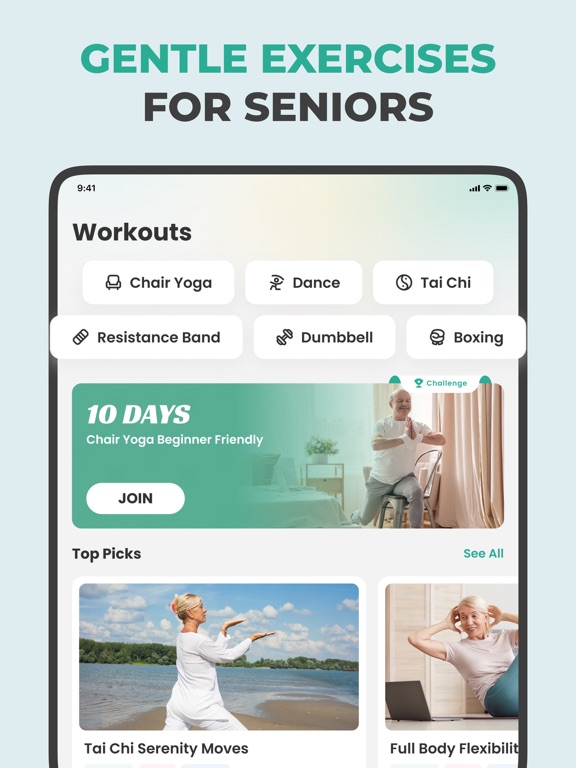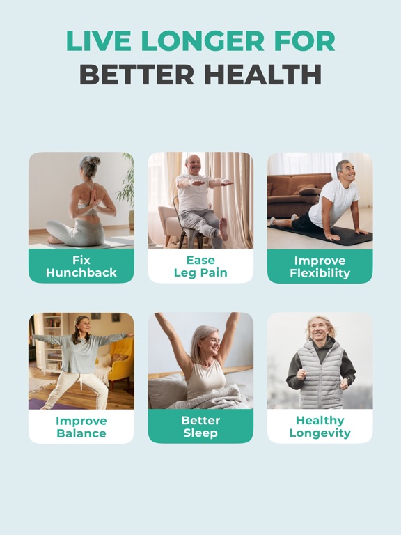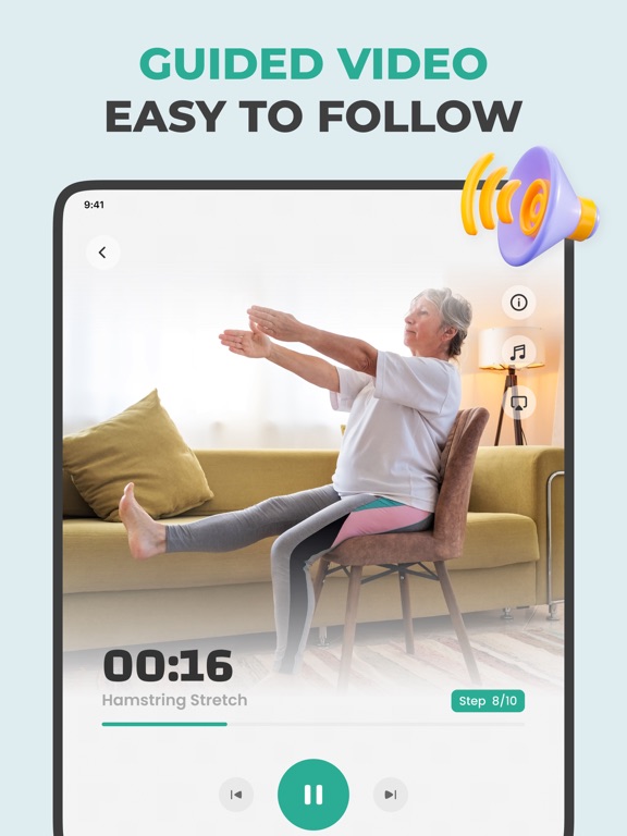 Exercises are low-impact and carefully demonstrated, reducing the risk of injury while still delivering real physical benefits. Movements are slower and controlled, allowing users to focus on proper form and breathing. This makes the app suitable not only for active seniors but also for beginners or those returning to exercise after a long break.